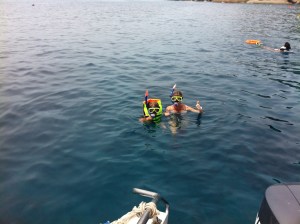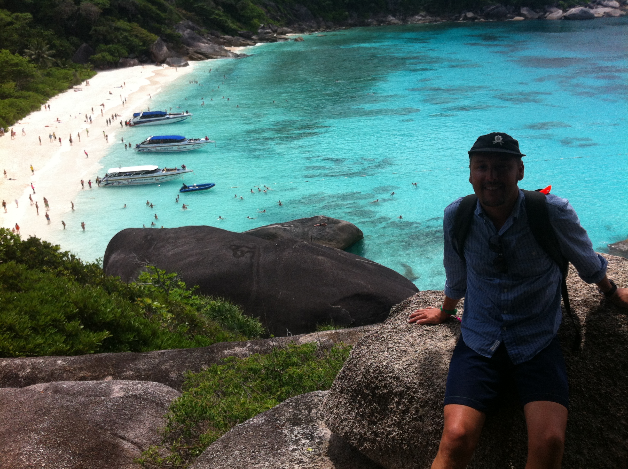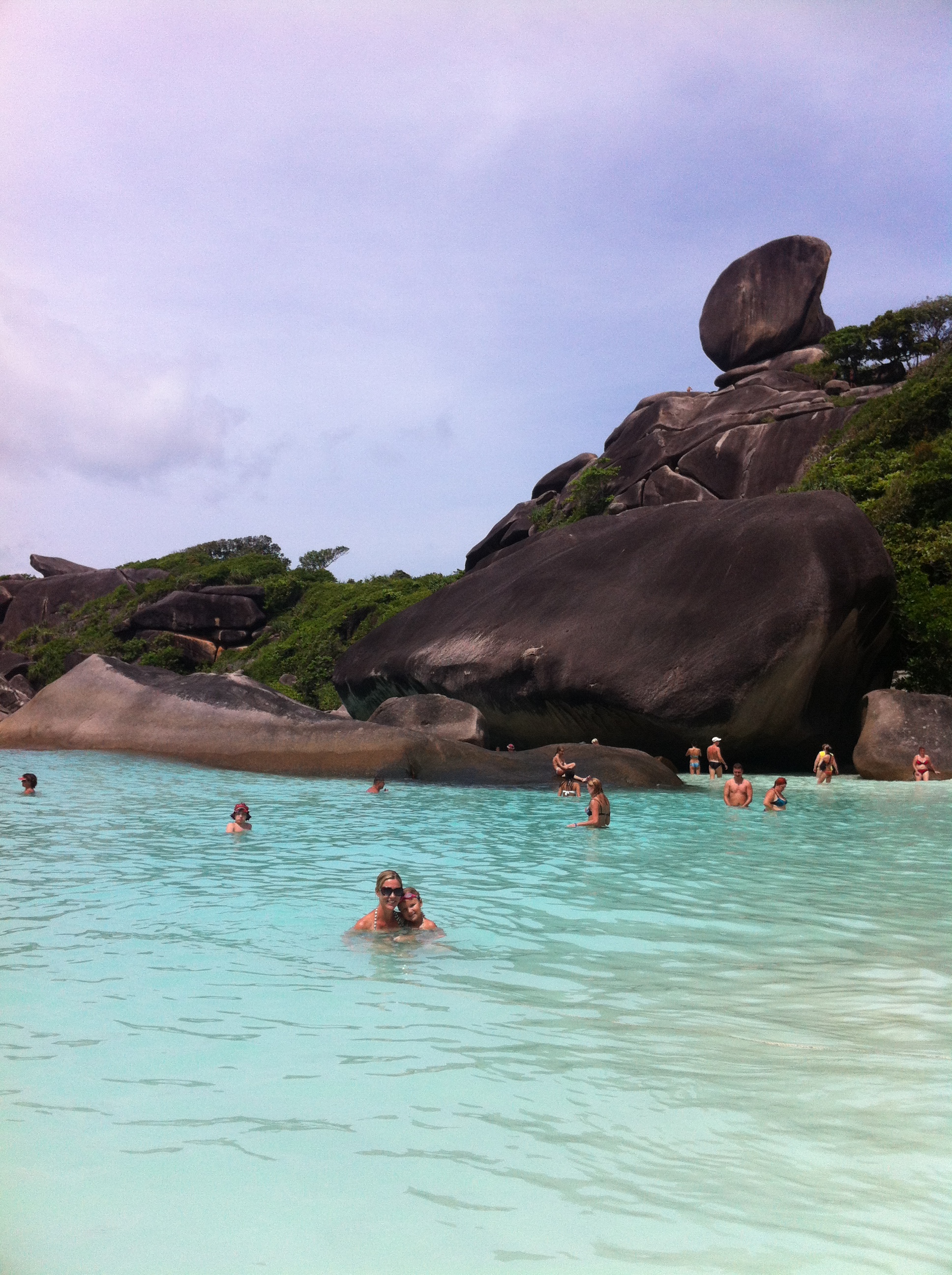 - Similan Islands: Yesterday we ventured further afield as part of a snorkeling trip to the Similan Islands, which comprise a national park of nine islands in the Andaman Sea. We took a shuttle about an hour north to the mainland to the Tap Lamu Pier, where it was an hour-long ride via speedboat to the Similan Islands. Z and I loaded up on Dramamine pre-departure, so didn’t experience any queasiness, unlike one unlucky woman on our boat. This was Z’s first official snorkeling trip and she was rewarded with a up close encounter with a sea turtle. First it swam by her, then it touched her and by this evening it had pulled her along for a ride. 🙂 The soft white sand beaches were gorgeous and the islands were dotted with unusual rock formations. The coral wasn’t in great shape in the areas we swam and snorkeled in, which was a bit depressing, but I read that the National Park service is making attempts to better preserve the environment of a couple of the famous dive sites. Overall, it was a fantastic day’s outing, with friendly tour operators and a well-organized (if packed) excursion. We learned it’s possible to stay overnight in tents or bungalows on Koh Miang (Island #4) so perhaps next time!