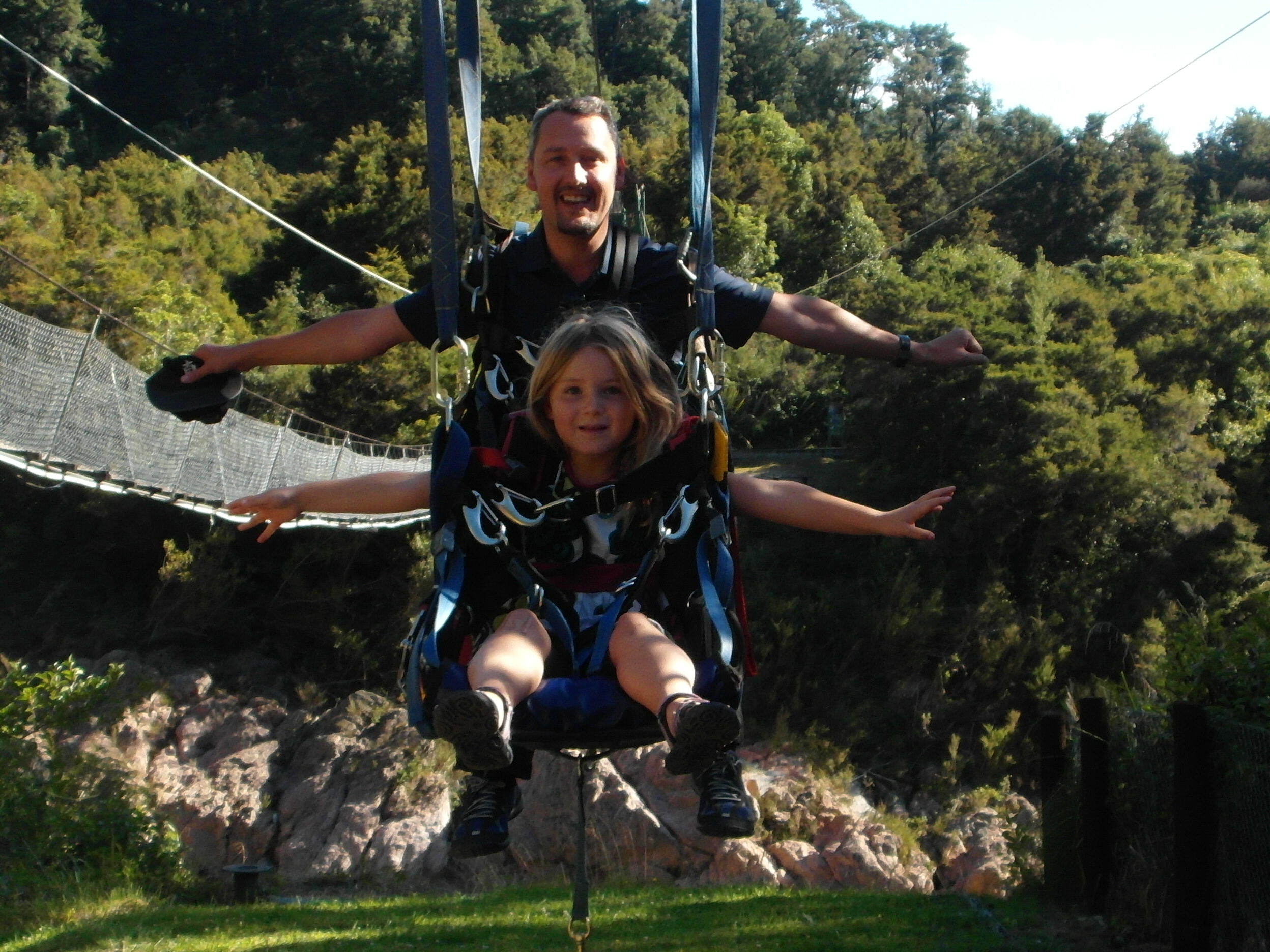 J and Z on Buller Canyon Swing – whereas I had been left paralyzed with vertigo on the other side of the longest swing bridge in NZ